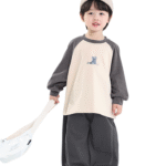 “Kids’ loose-fit denim culottes: Premium dark blue fabric, elastic waistband & side pocket. Breathable 7/8 length for all-day comfort. OEM/ODM available